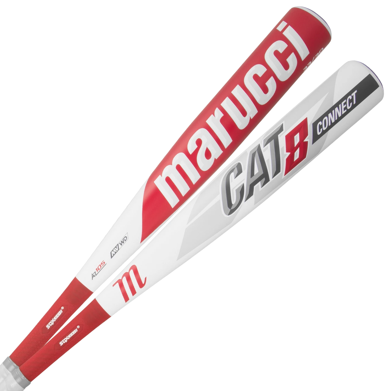 Power hitters love the end-loaded feel and ultra-responsive barrel of the CAT8 Connect BBCOR, a two-piece hybrid bat featuring a power-loaded barrel built with AZ105 super-strength aluminum alloy. The patented SDX EXT connection (US Patent No. 10,016,667) increases stiffness to maintain energy transfer to the ball, while also dismissing negative vibrations to the hands, resulting in maximum power and minimum sting.