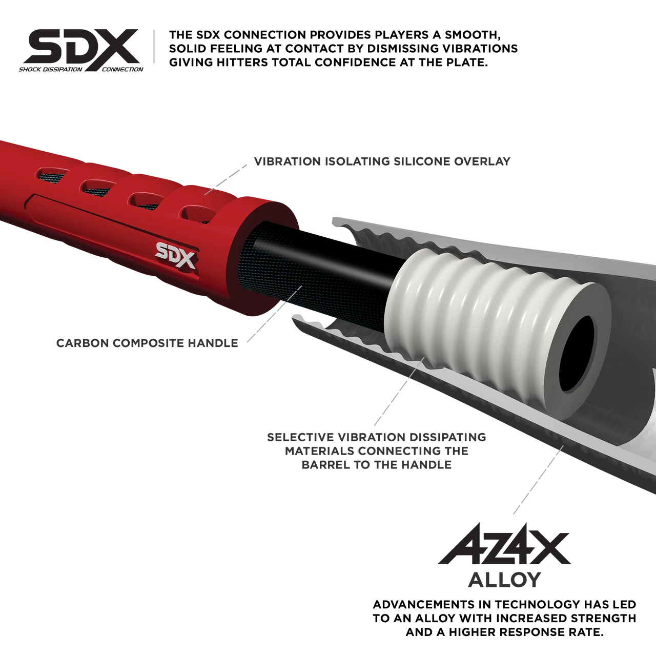 - Two-piece hybrid construction features a carbon composite handle with AZ4X alloy barrel