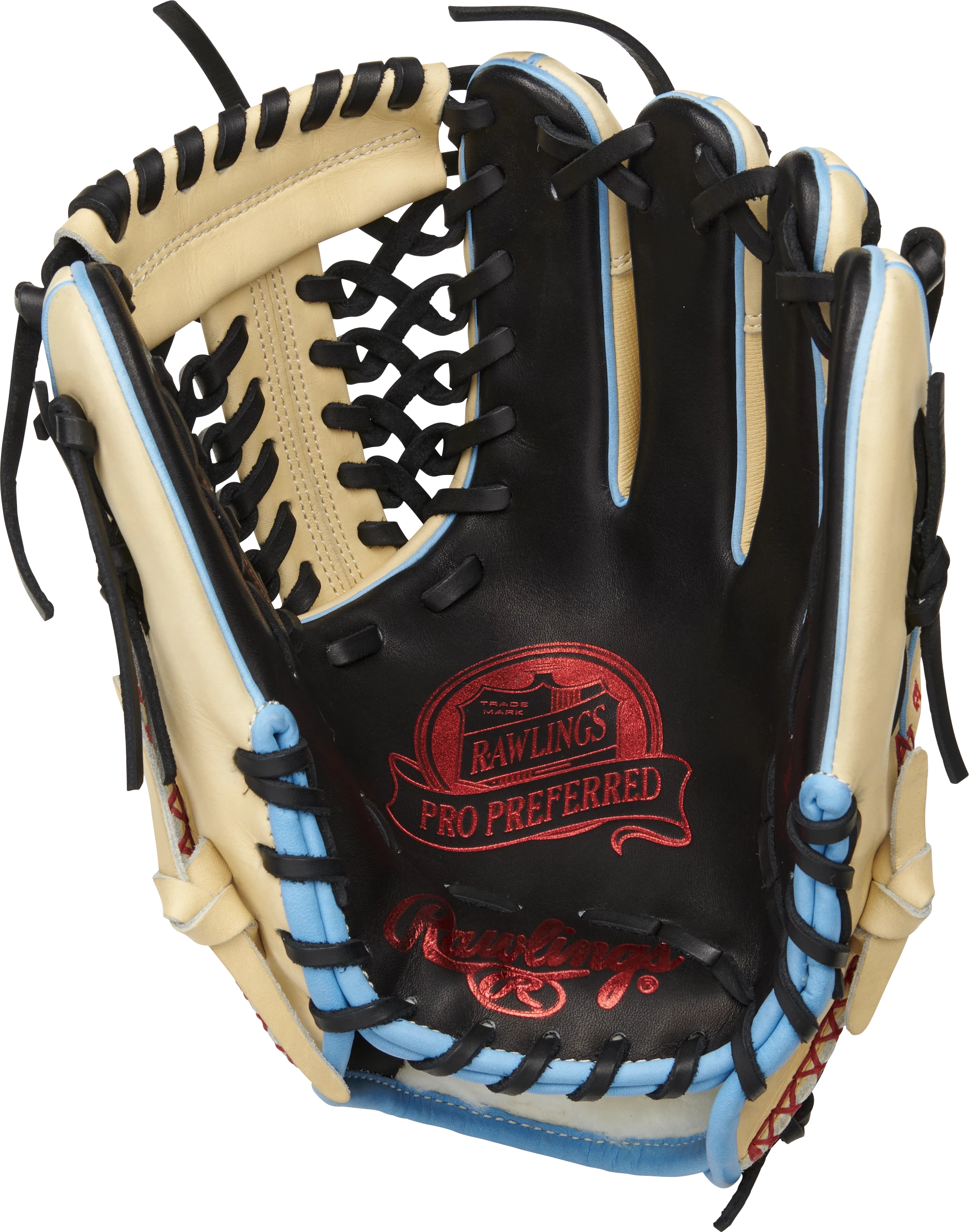 Masterfully crafted from the finest, ultra-luxurious kip leather, the 2022 Pro Preferred 11.5-inch infield/pitcher’s glove offers superior quality and performance. Its camel Speed Shell back reduces weight and offers added style and durability too! As a result, this Pro Preferred infield/pitcher’s glove will give you the confidence you need to snag any play that comes your way. In addition, all our Pro Preferred gloves feature a super comfortable Pittards’ sheepskin lining, wool wrist strap, and padded thumb sleeve for an unmatched feel every time you wear them. This gamer was also constructed in our popular 200-pattern, which offers a deep, wide pocket, and a Modified Trap-Eze web for extreme versatility for pitchers and infielders alike. The camel Speed Shell back is perfectly accented by the black palm & scarlet/Columbia blue colorway as well. This glove also includes hand-sewn welting for added style and comfort too! The 2022 Pro Preferred 11.5-inch infield/pitcher’s glove truly is perfect for any elite player looking for a glove to help them level up their game. See why Rawlings is the #1 choice of pros, buy now!