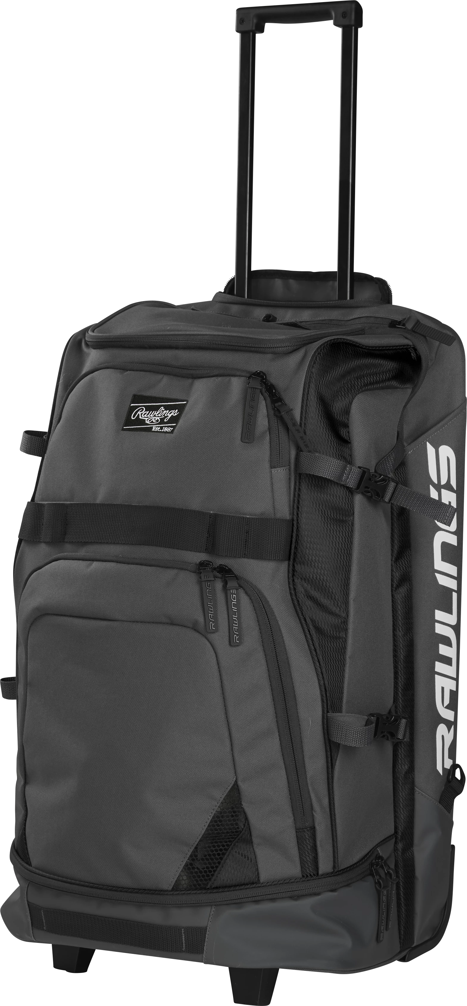 The Rawlings wheeled catcher’s backpack makes your life easier. It’s the most convenient way to get all your equipment to games and practices. This rolling equipment bag’s design is so much easier to carry than a bulky over-the-shoulder bag. It’s extendable handle and rugged wheels allow you to easily pull it along the sidewalk or parking lot. As a result, you won’t waste precious time and energy just getting to and from fields. In addition, this catcher’s bag offers a vast amount of storage, a dedicated glove storage pocket, chest protector storage, and a separate pocket for shoes too! For even more added convenience the external leg guard storage allows you to strap your leg guards to the outside, so you don’t have to figure out how to cram them into the bag itself. It also holds up to four bats so you can make sure to keep all your equipment together in one place.