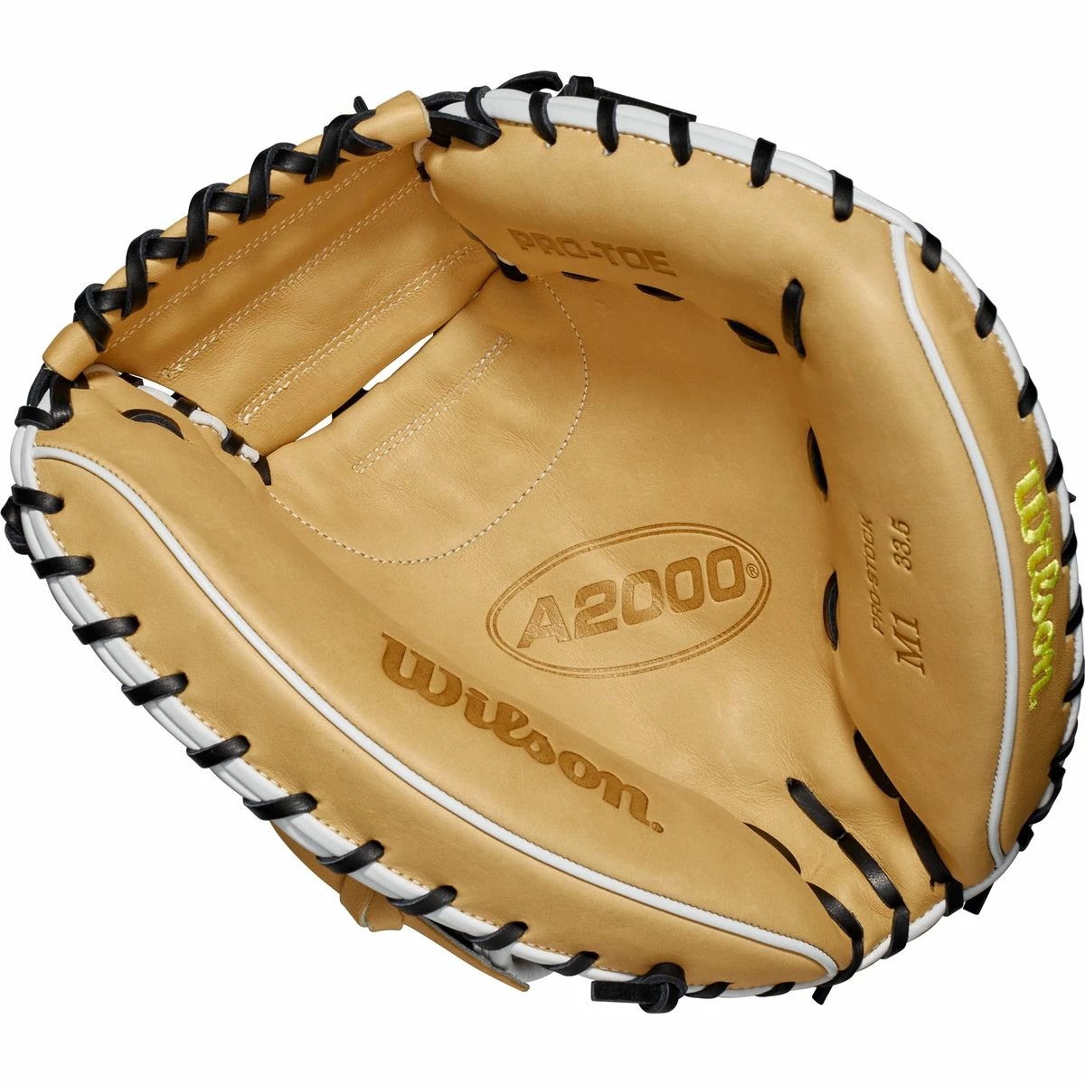 The 33.5″ Wilson A2000 M1 SS features an extended palm to help reduce rebound. Developed with Blonde Pro Stock Leather combined with Black SuperSkin, the A2000 M1 is a light, long lasting glove with a great break-in.