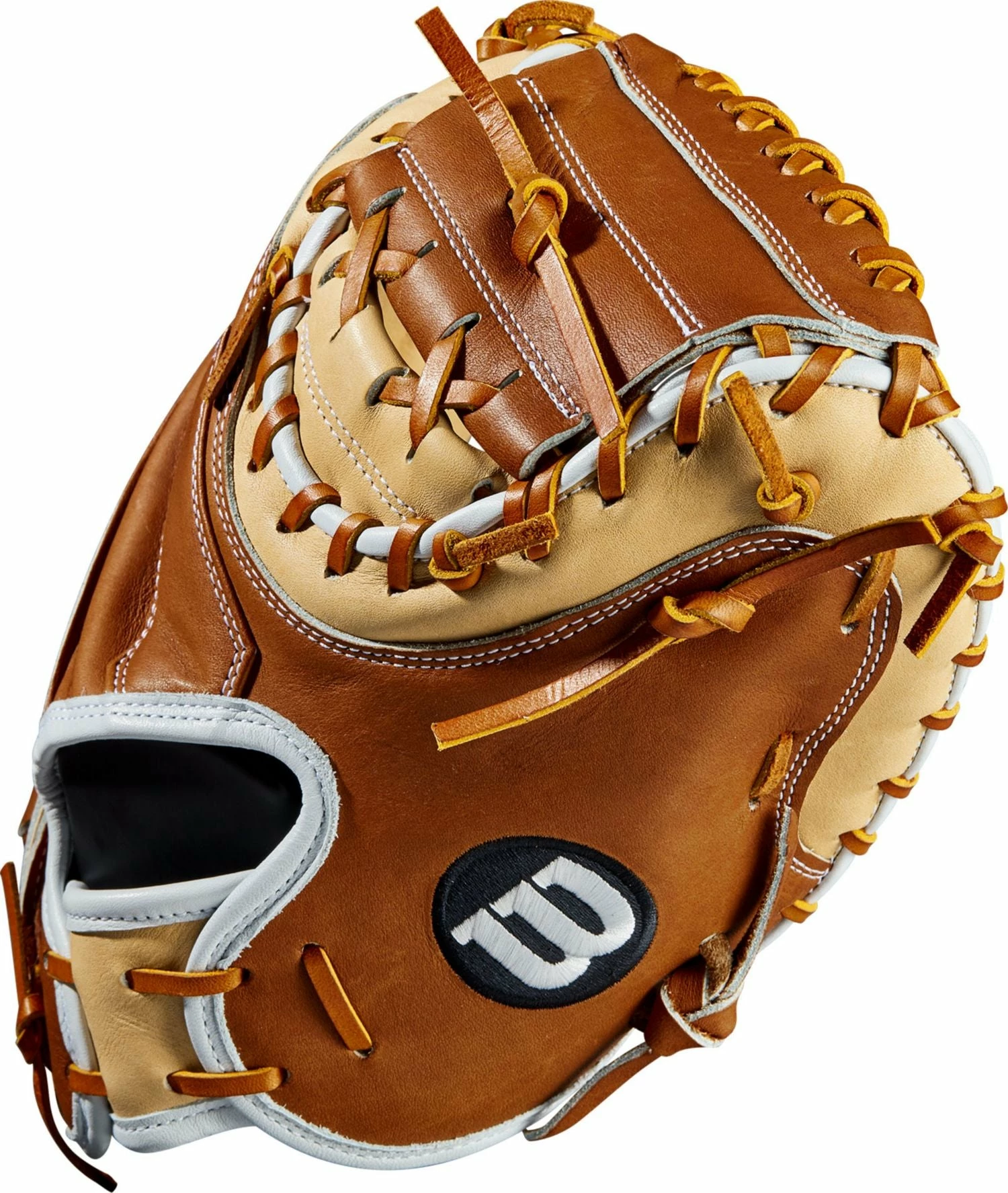 Get to work behind the plate with the A2K® M1. This model has a Half Moon Web and Blonde and Saddle Tan Pro Stock Select Leather in a durable design and Dri-Lex Lining keeps your hand cool on hot afternoon contests.